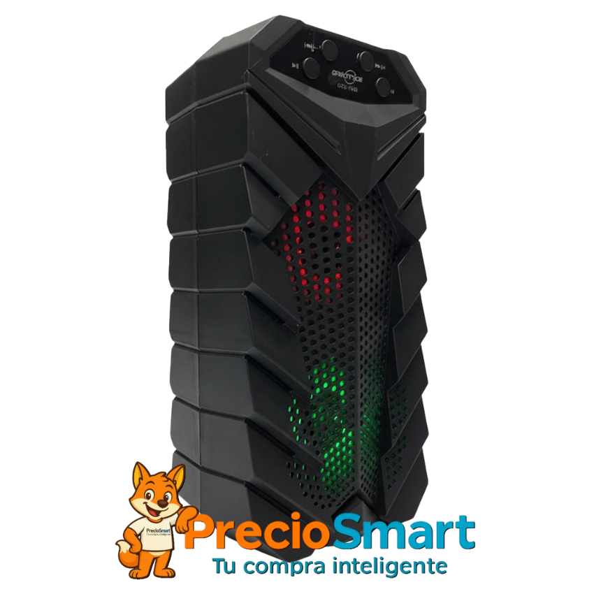 - Sonido Fuerte y Nítido: Equipado con dos bocinas de 3" que ofrecen una potencia total de 5W, el GTS-1559 asegura un audio claro y potente, ideal para reuniones, fiestas o uso diario.